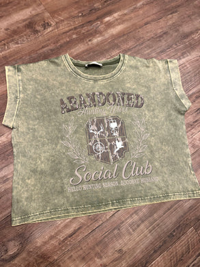 Olive green acid wash abandoned wives hunting social club t-shirt