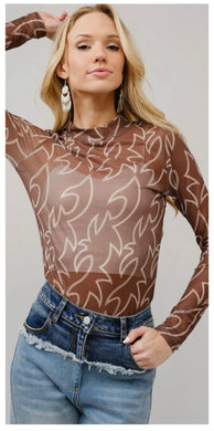 Brown & Navy Cowboy pattern mesh top