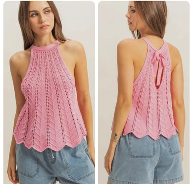 Candy pink crotchet tank