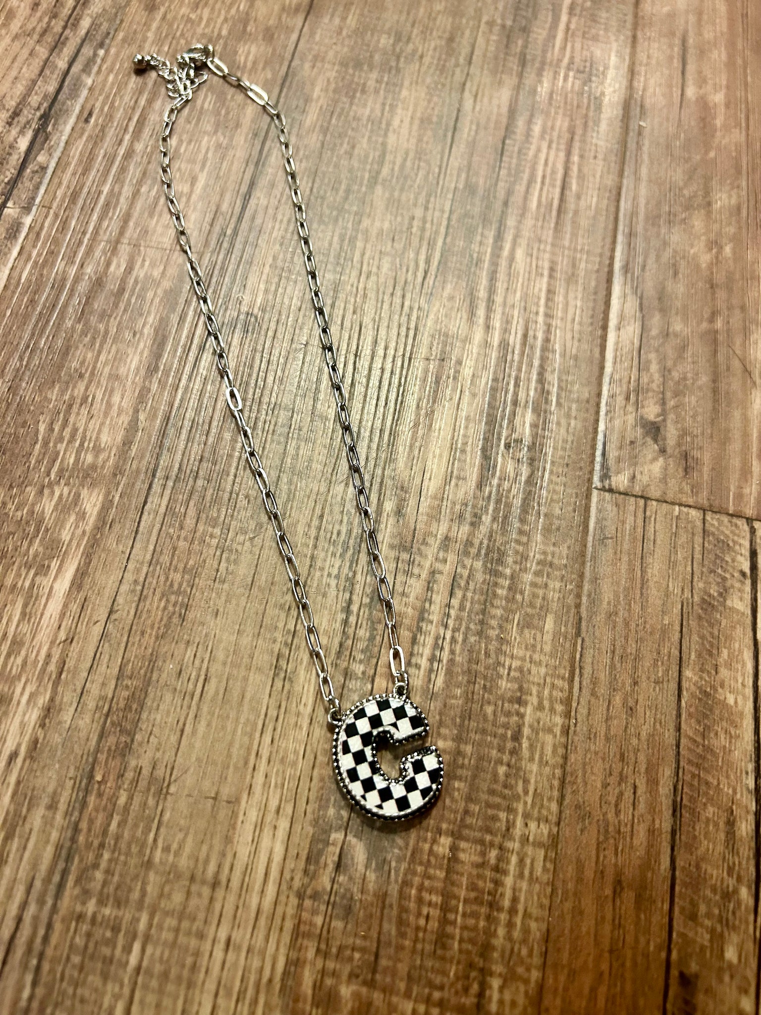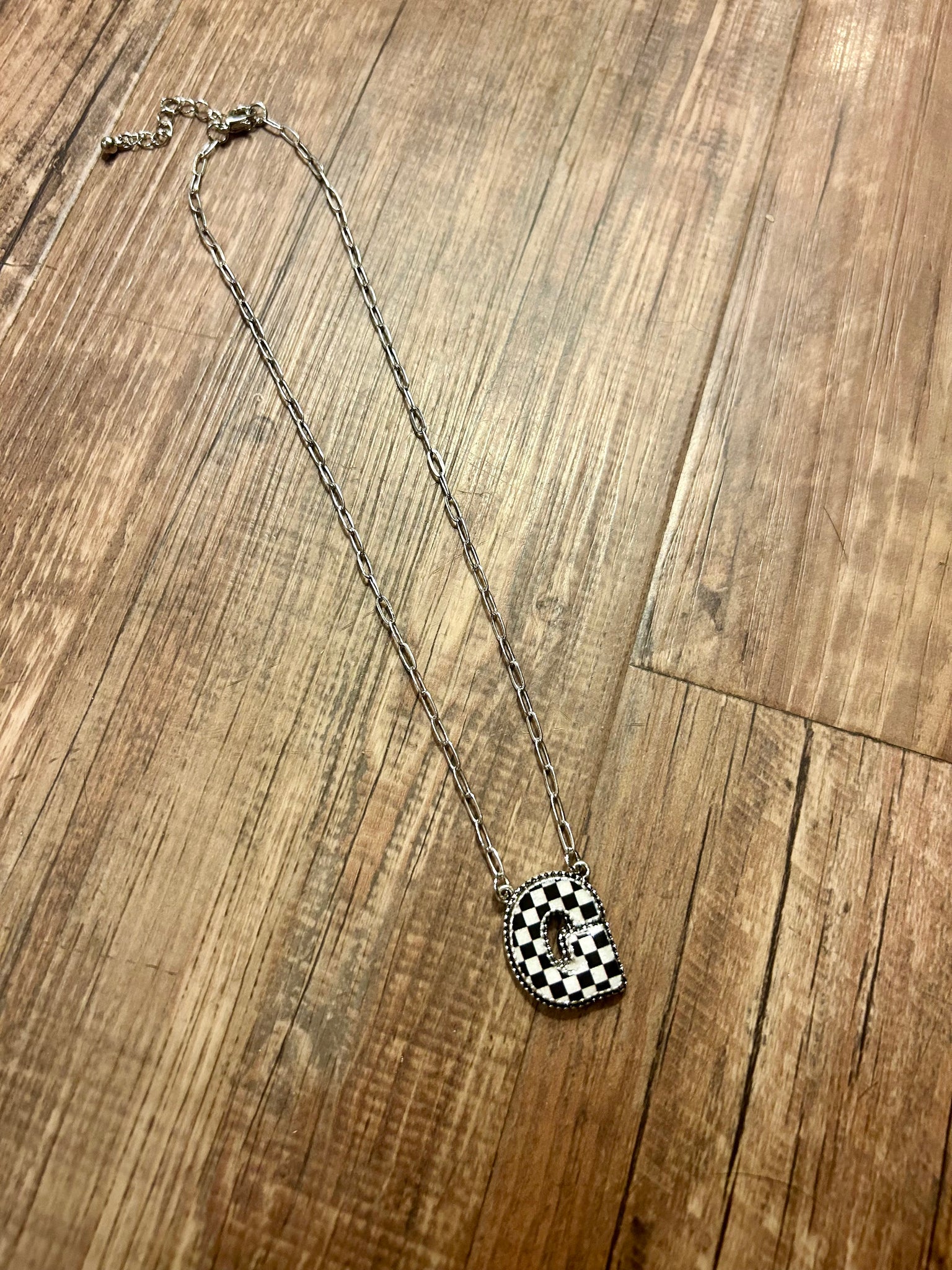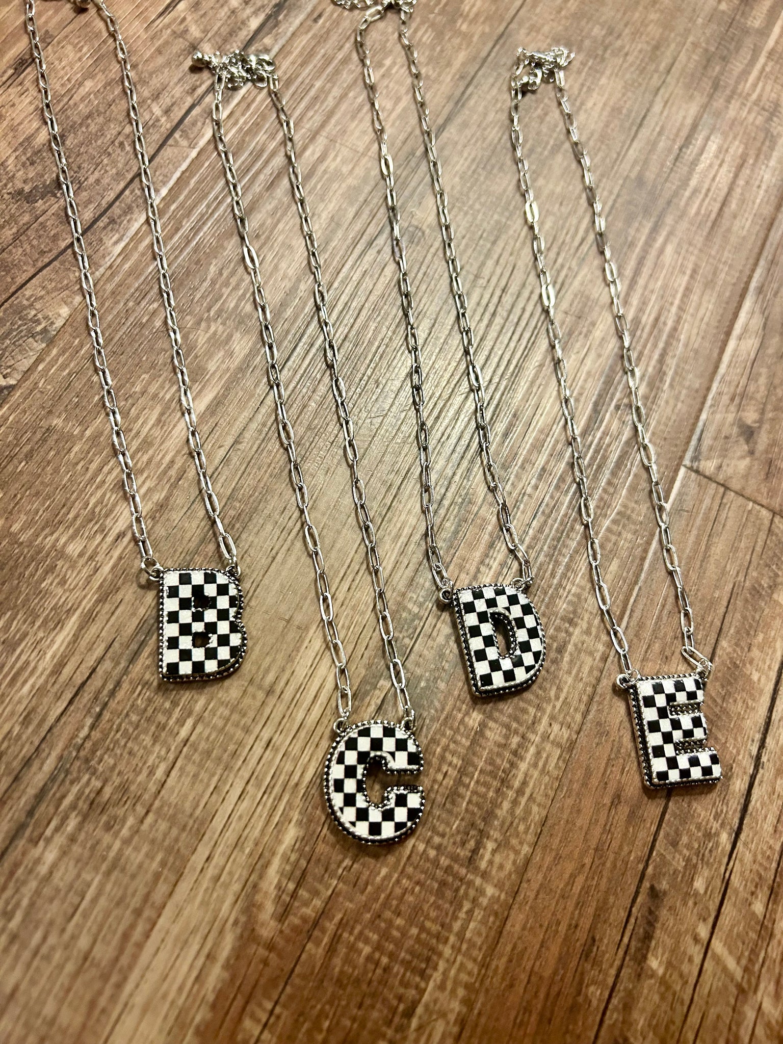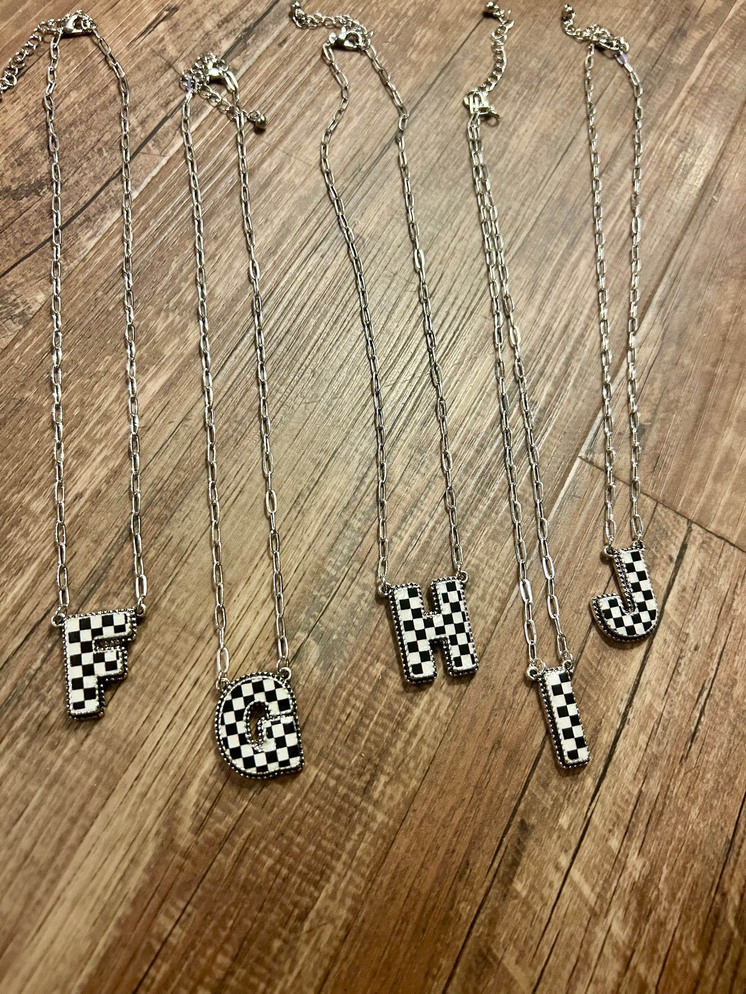 Our collection of checkered initial necklaces from A-Z perfect medium weight synthetic stones perfect to wear alone or to layer adjustable chain length