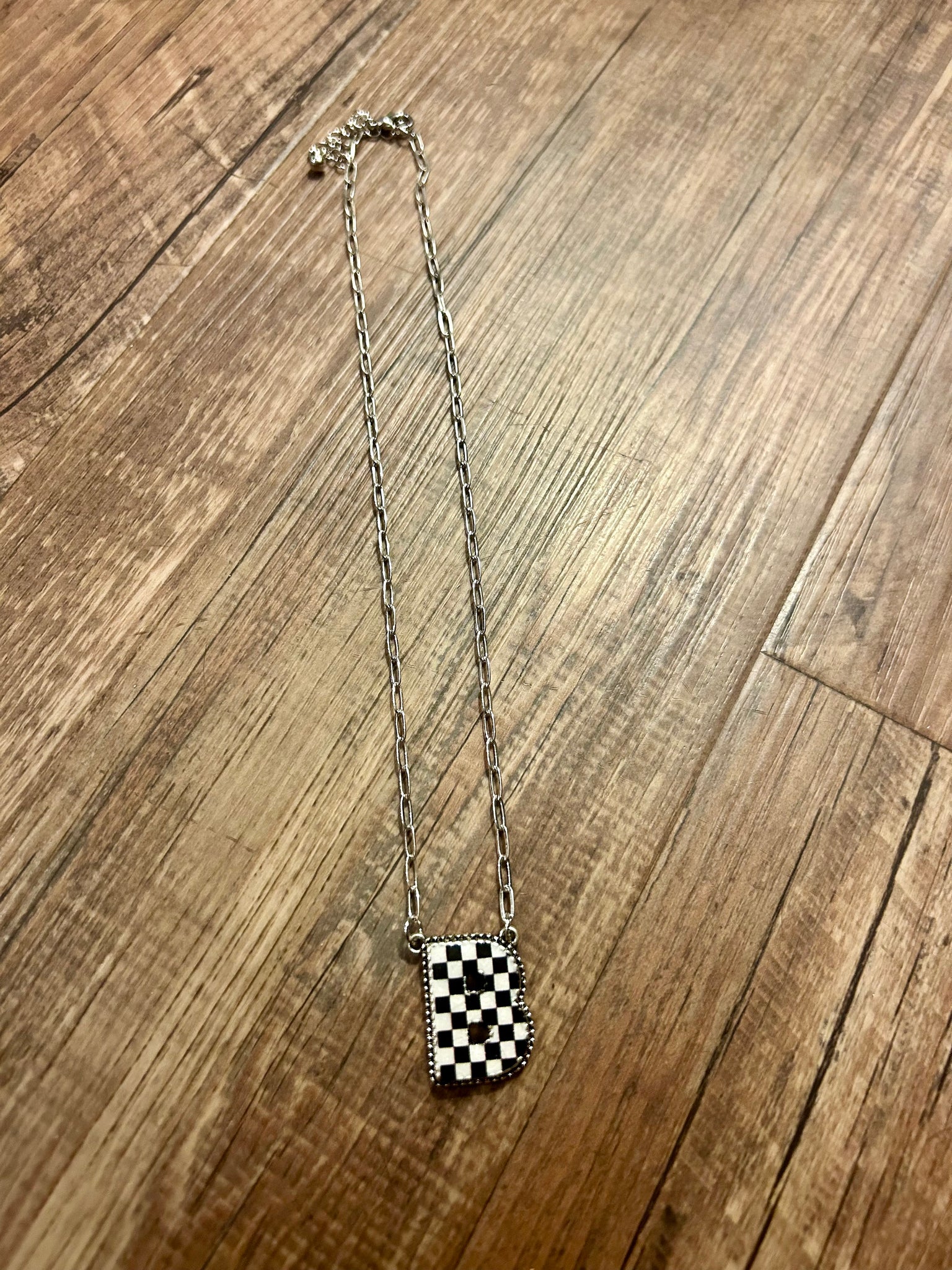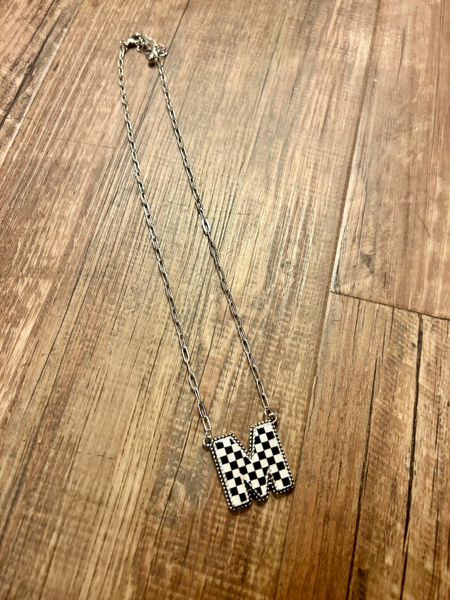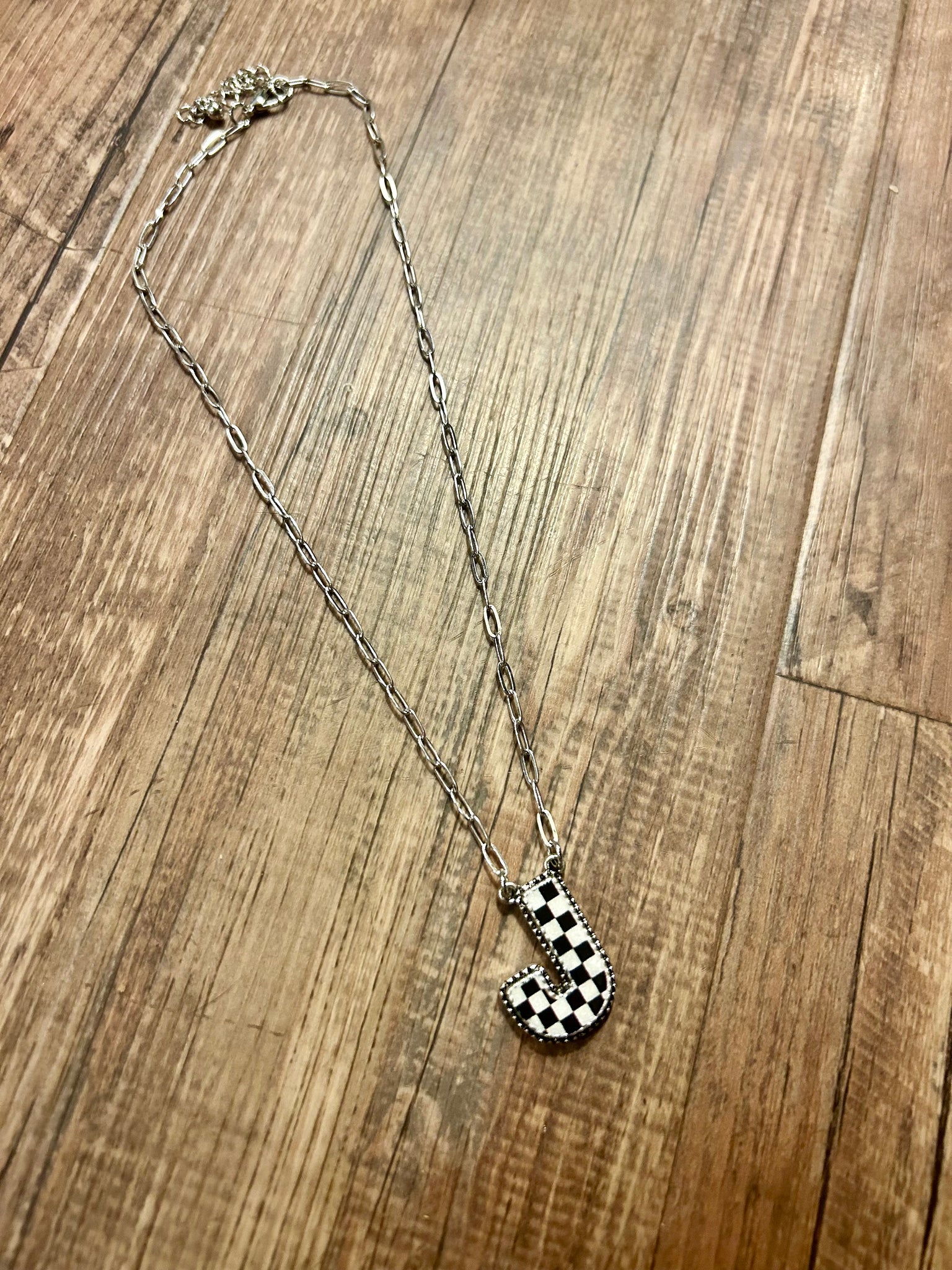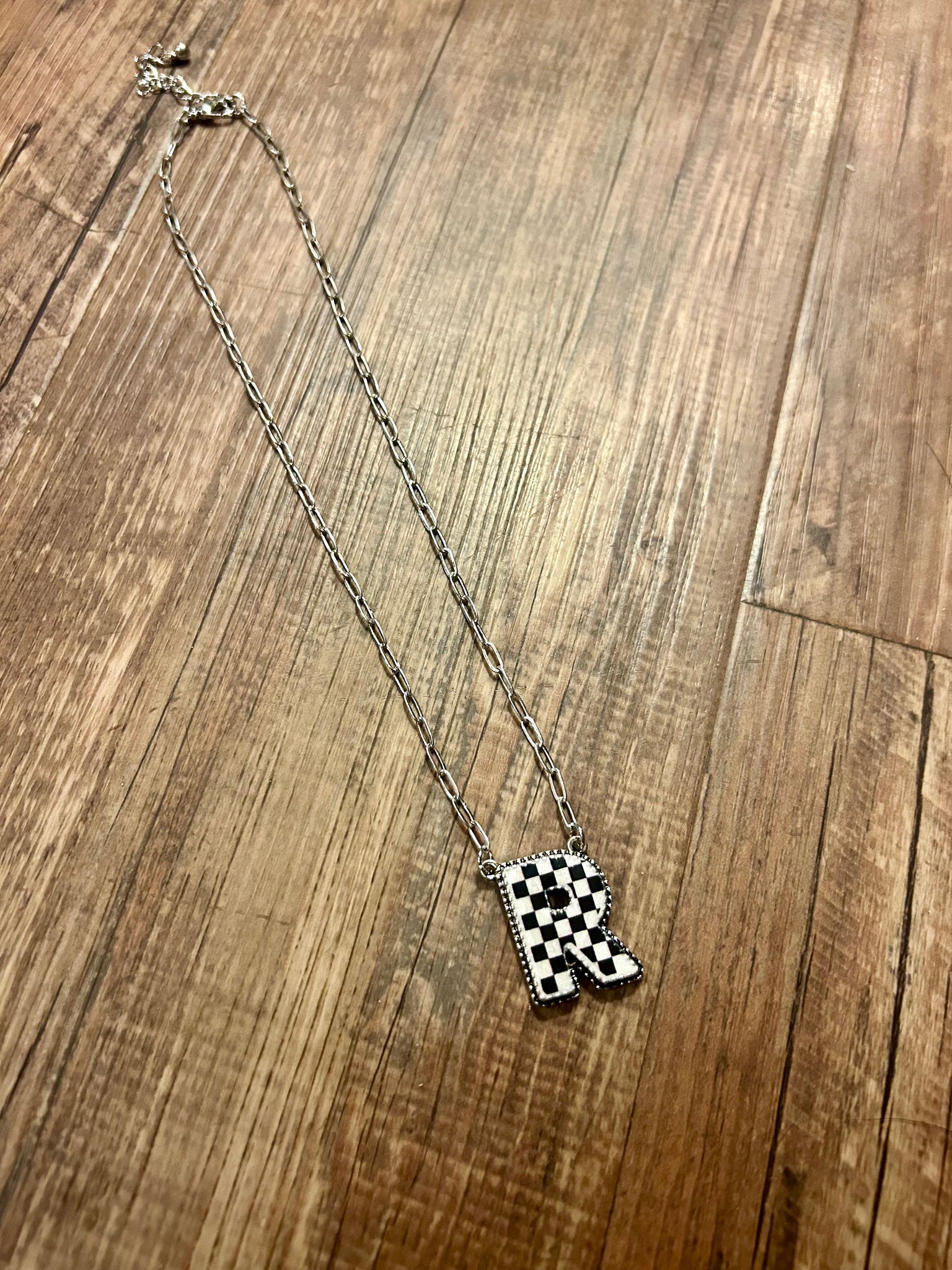 Our collection of checkered initial necklaces from A-Z perfect medium weight synthetic stones perfect to wear alone or to layer adjustable chain length