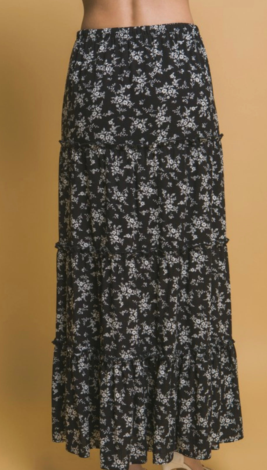 Black and white ditzy floral maxi skirt